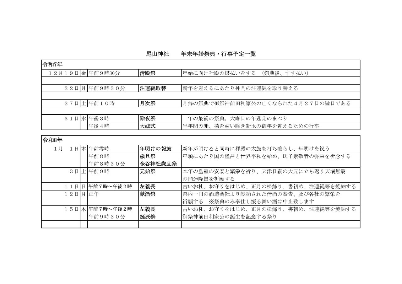令和8年尾山神社初詣のご案内